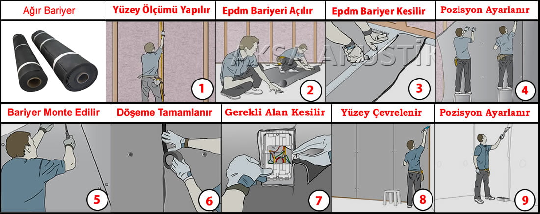 Epdm ses bariyeri titreşim kaynaklı yada darbe ve yapı kaynaklı yayılan gürültüyü engellemek amacıyla kullanılan ve yüksek performans sağlayan akustik ses izolasyon malzemesidir. Sık bir şekilde inşaat sektöründe duvar, tavan ve zemin yalıtımında kullanılır. Epdm ses bariyeri ses yalıtım süngerleri ile birlikte de uygulanır. İki akustik ve ses yalıtım süngeri arasına lamine edilerek yüksek ses kesim kuvvetine sahip malzeme halini alır. Makine odaları, jeneratör odaları, müzik odaları vb. bir çok mekanda gürültünün kesilmesi gereken her yerde kullanılır.